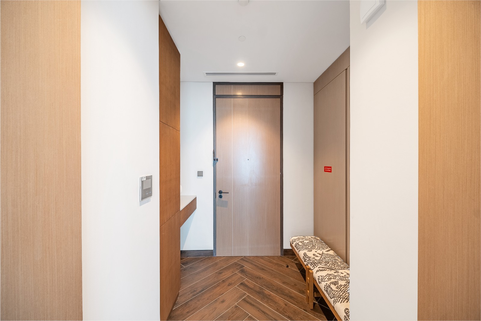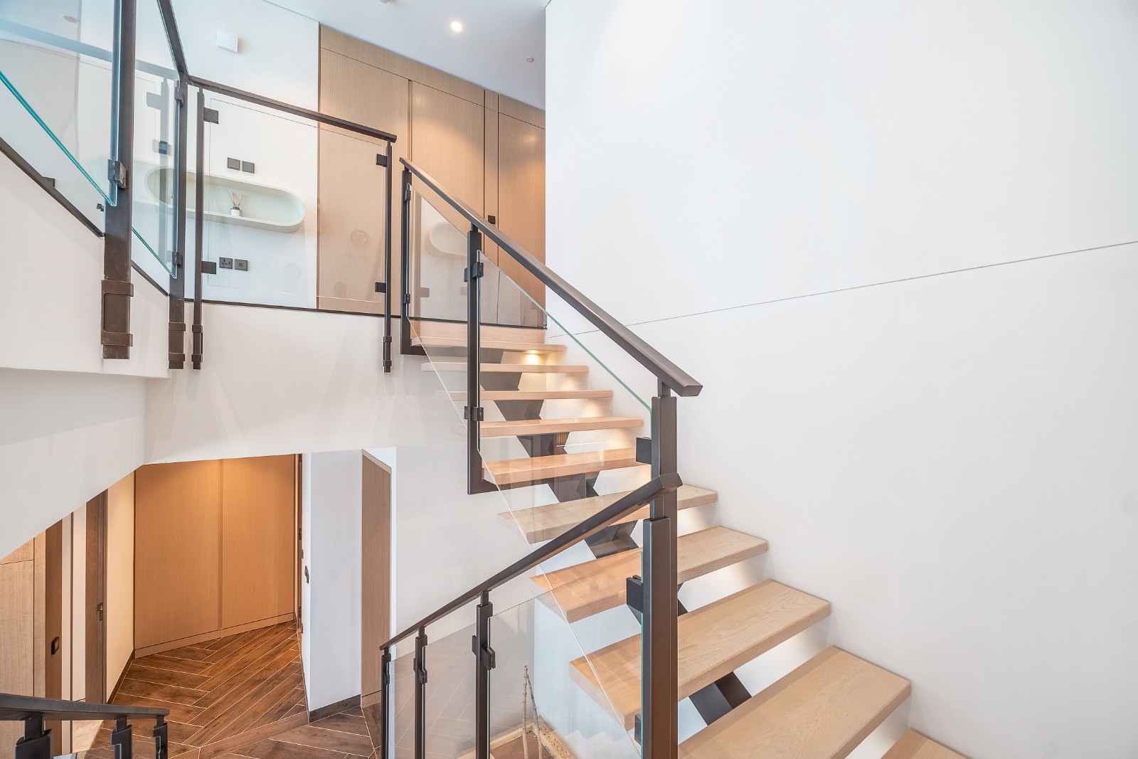 Designed across two levels, the residence offers a calm and refined living experience, enhanced by a double-height living area and expansive glazing overlooking Za’abeel Park and Dubai Frame.
